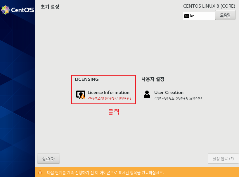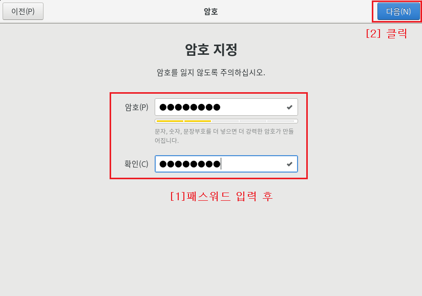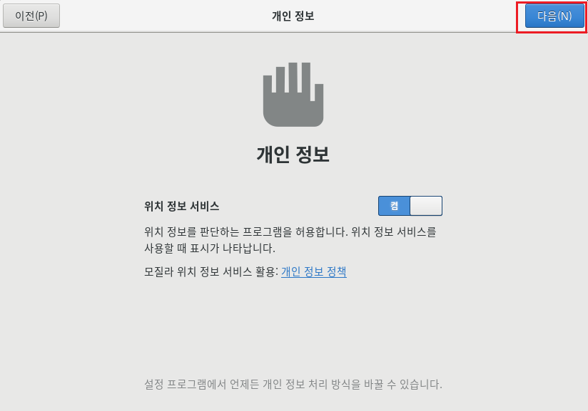 여기서부터는 재부팅 시 그래픽 인터페이스로 화면으로 진행이 됩니다.
