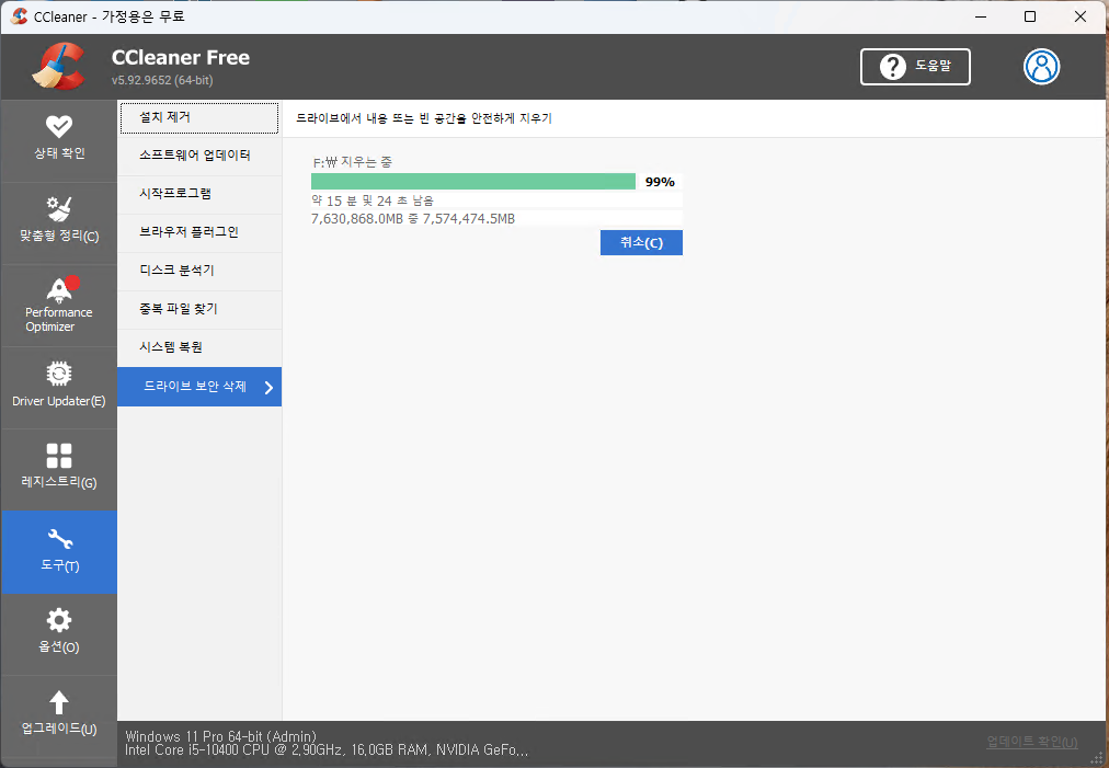 PC 최적화 유틸리티(feat 드라이브 보안 삭제) - CCleaner