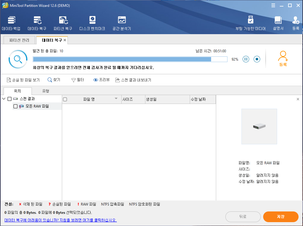 8TB 전체 복구 스캔만 9시간 정도 소요되네요