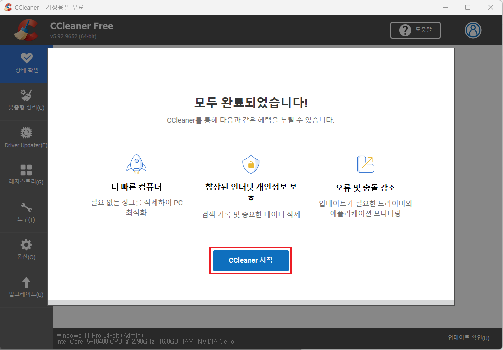 ④ CCleaner 시작