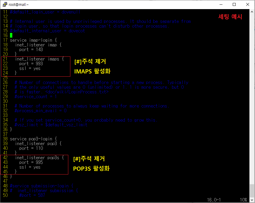※ IMAPS (#)주석 제거하여 SSL/TLS 활성화