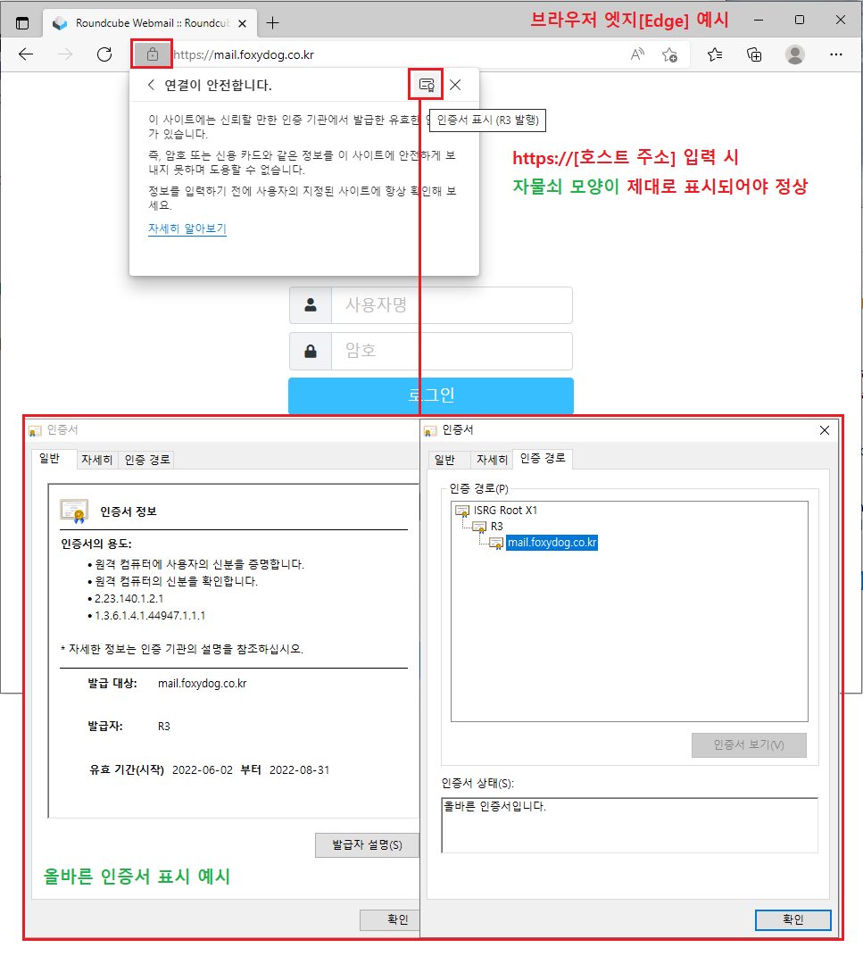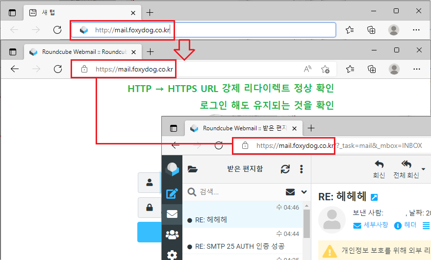 ⑤ 웹메일 접속 인증서 확인[HTTPS URL 리다이렉트 확인]