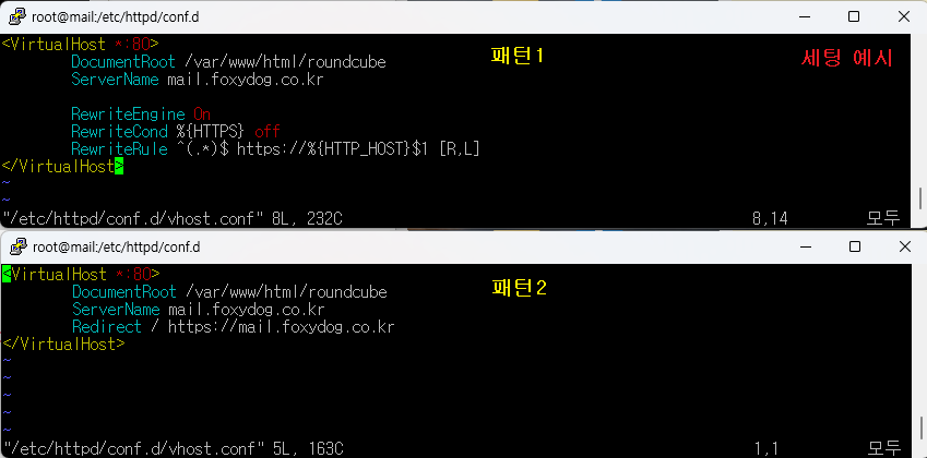 2. http://[mail.foxydog.co.kr] [호스트 주소]가 절대값으로 변경되지 않는다면 단순 Redirect 사용