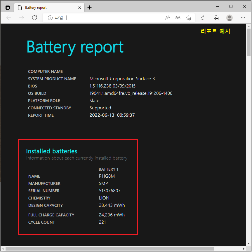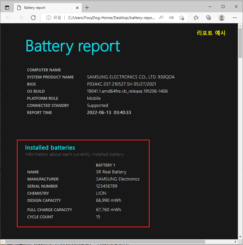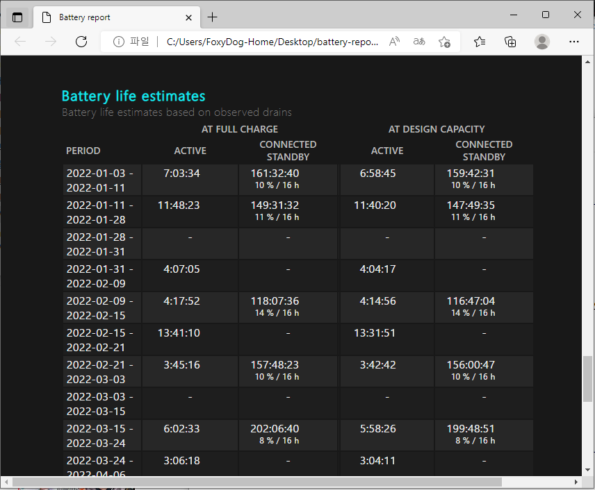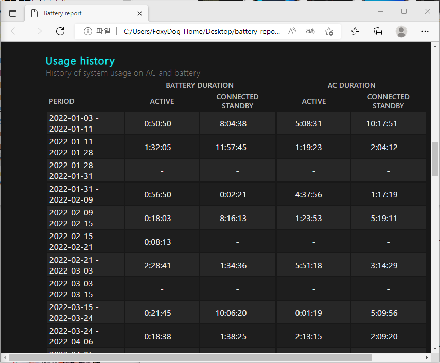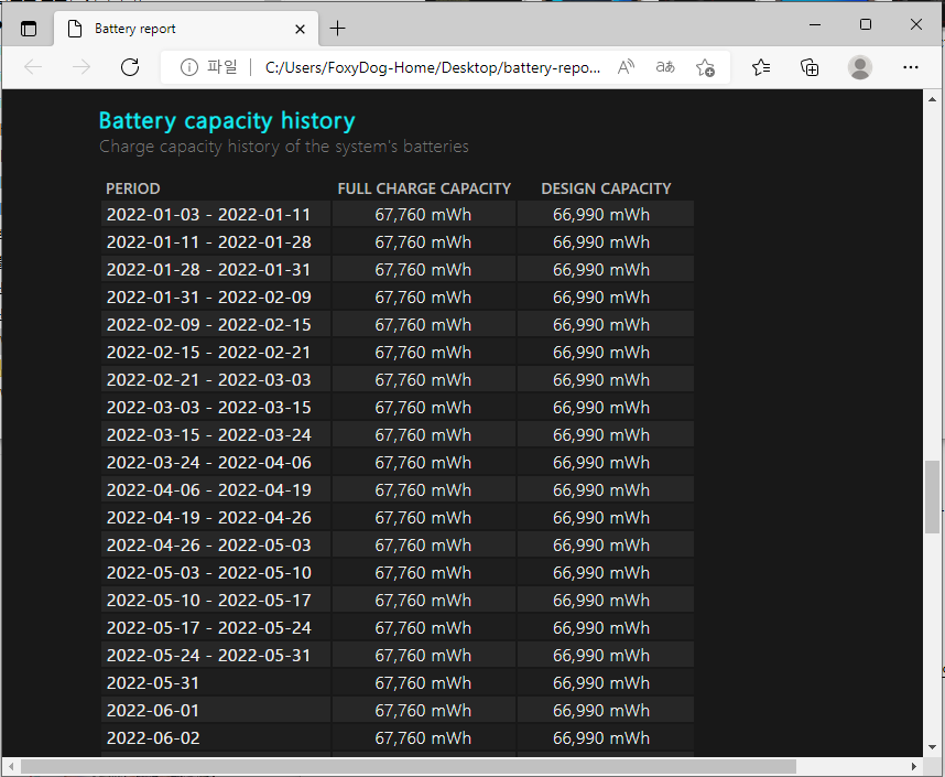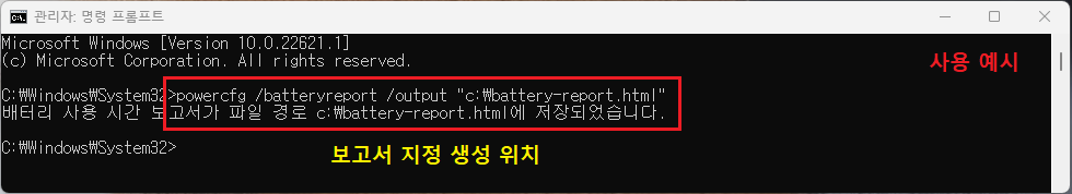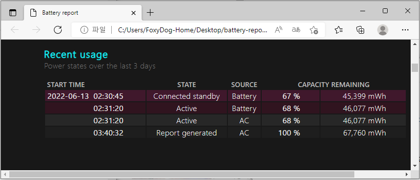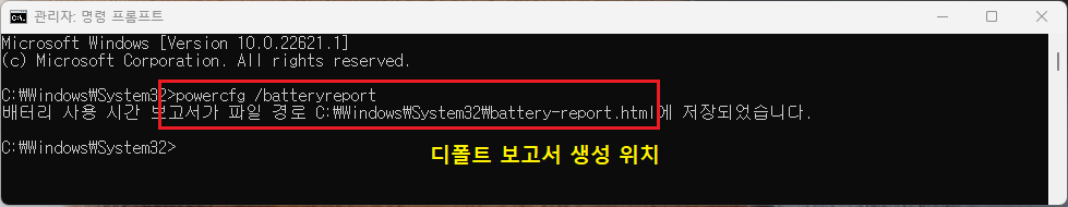 디폴트 경로 C:\Windows\system32\battery-report.html