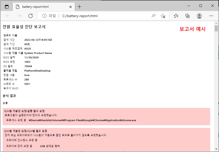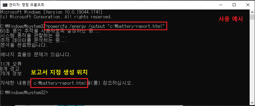 디폴트 경로 C:\Windows\system32\energy-report.html