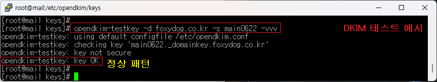 ①서버 내 opendkim-testkey 도구를 이용한 테스트