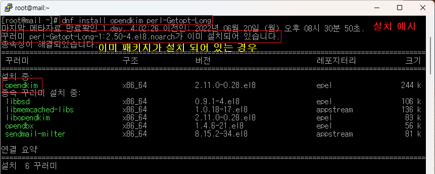 하지만 Amavis 경우는 OpenDMARC와 연동할 수 없기 때문에 OpenDKIM 설치를 진행합니다.