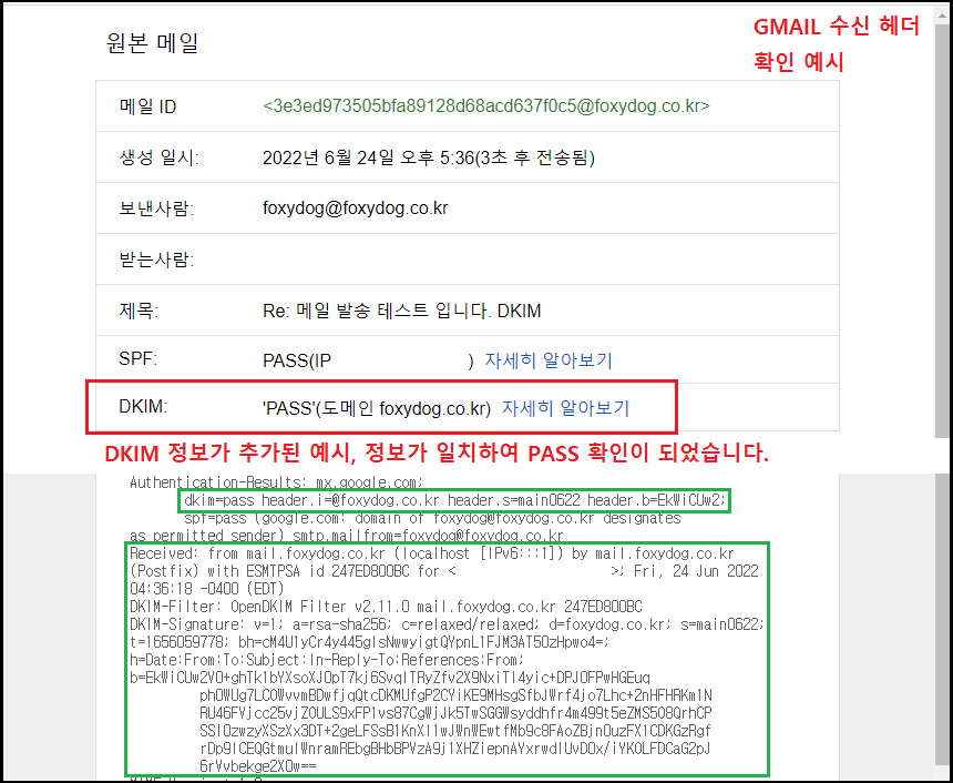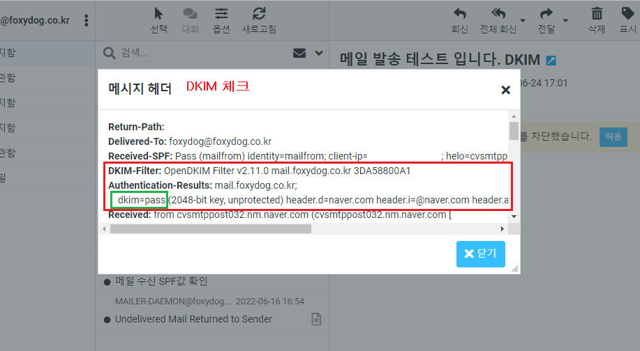 ③ 메일 발송시 헤더 DKIM 필드 추가 : Signature field added [발송]