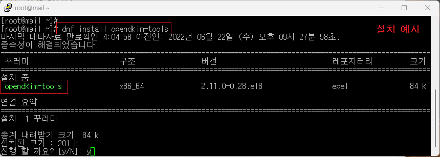 [root@ ~]# systemctl start opendkim [서비스 시작]