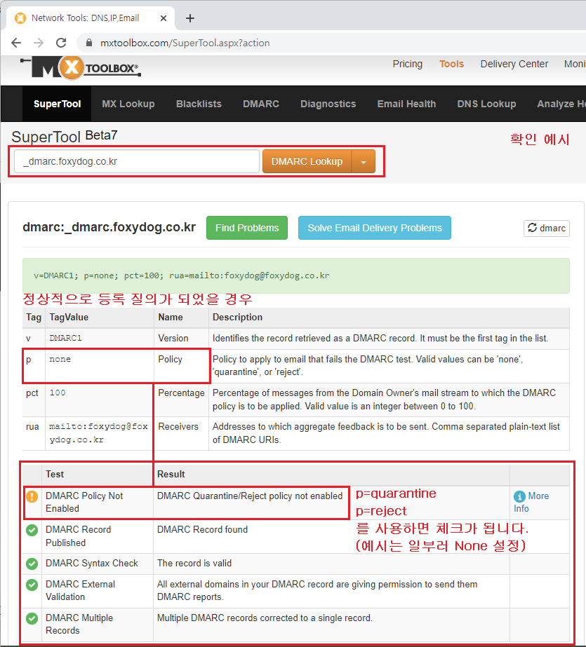 ③ 사이트를 이용한 DMARC 체크