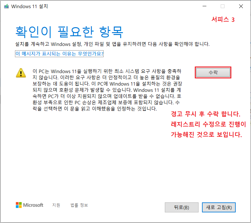 ※ Windows 11 설치 조건에 충족하지 못한 경우