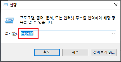 ① [윈도우키 + R] ▷ 실행 명령어 Regedit 입력