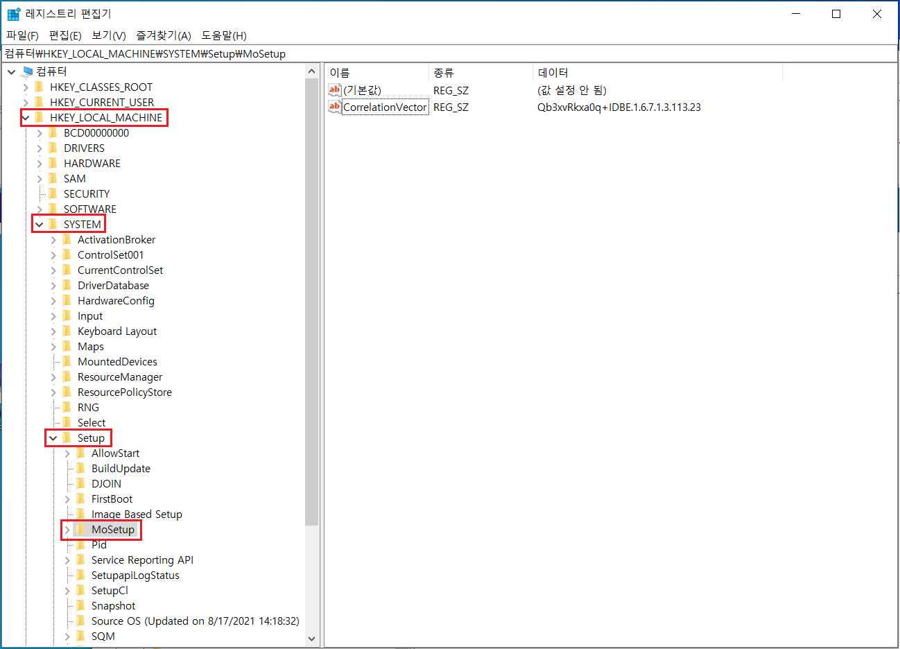 컴퓨터\HKEY_LOCAL_MACHINE\SYSTEM\Setup\MoSetup