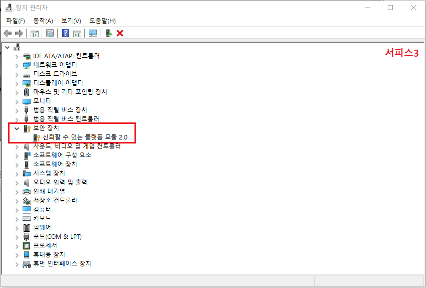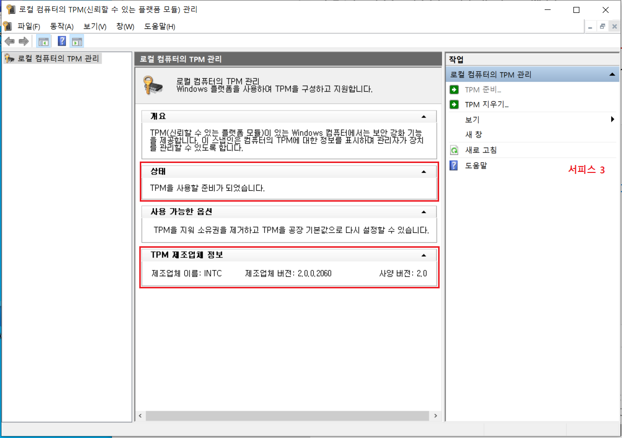 또는, ◇ [윈도우키 + R] ▷ 실행 명령어 TPM.msc 입력
