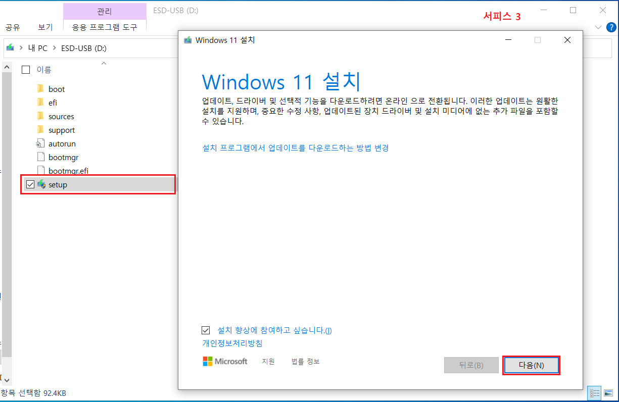 태블릿 PC [서피스 3] 연결 후 Setup 설치 진행