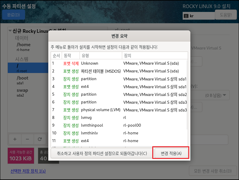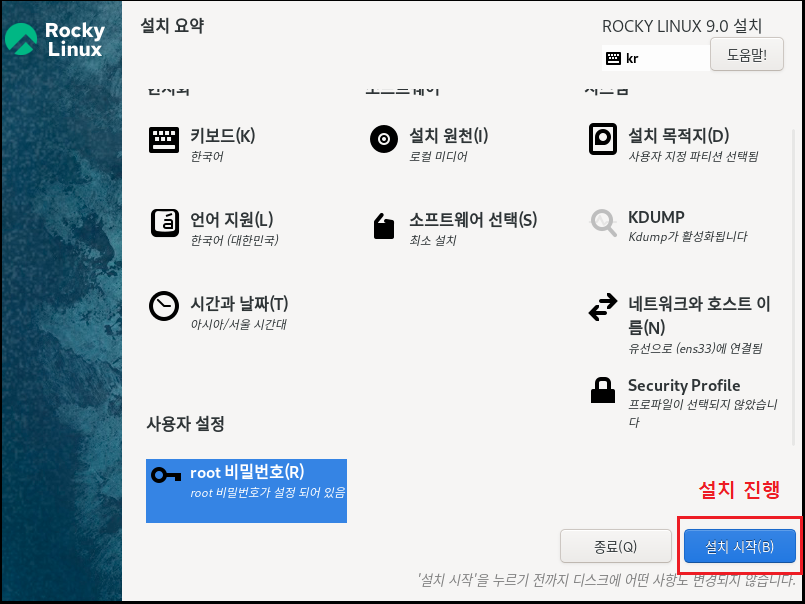 Rocky Linux 9.0 (블루 오닉스) - 설치