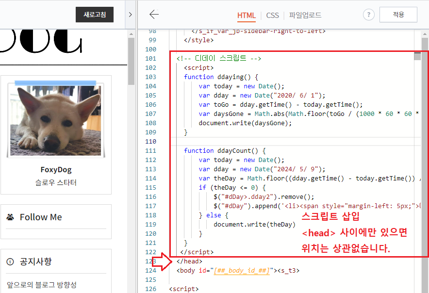 티스토리 디데이(D-Day) 모듈 만들기