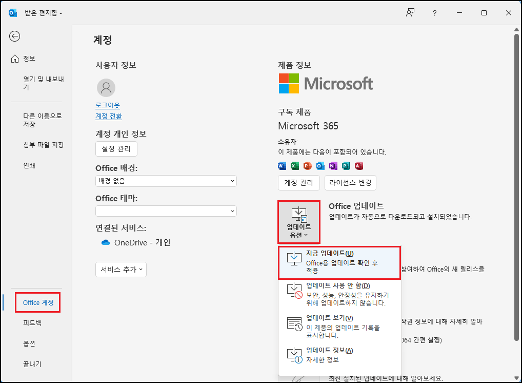 STEP04 → Outlook 최신 버전으로 업데이트 하기