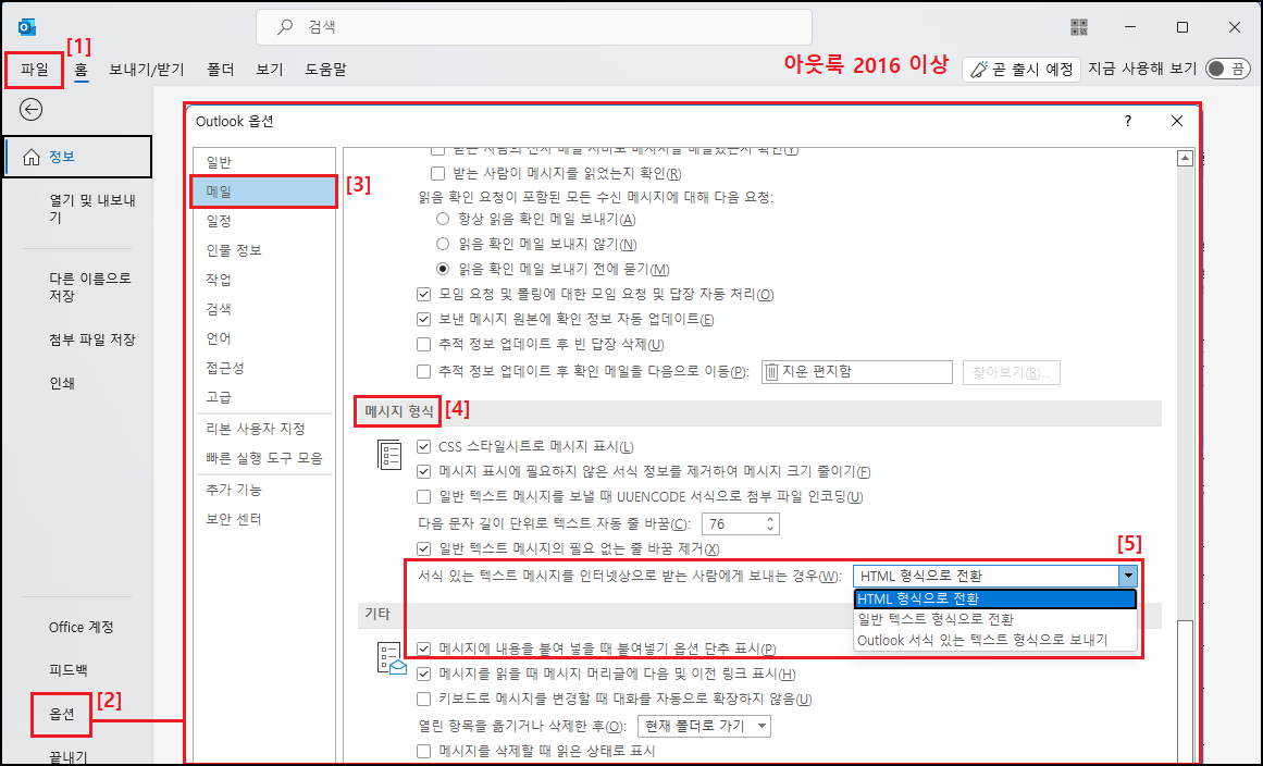 STEP01 → Outlook 옵션(메일 메시지 형식 확인)
