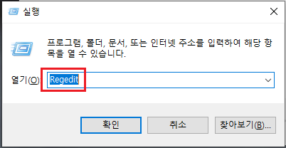 ① [윈도우키 + R] ▷ 실행 명령어 Regedit 입력