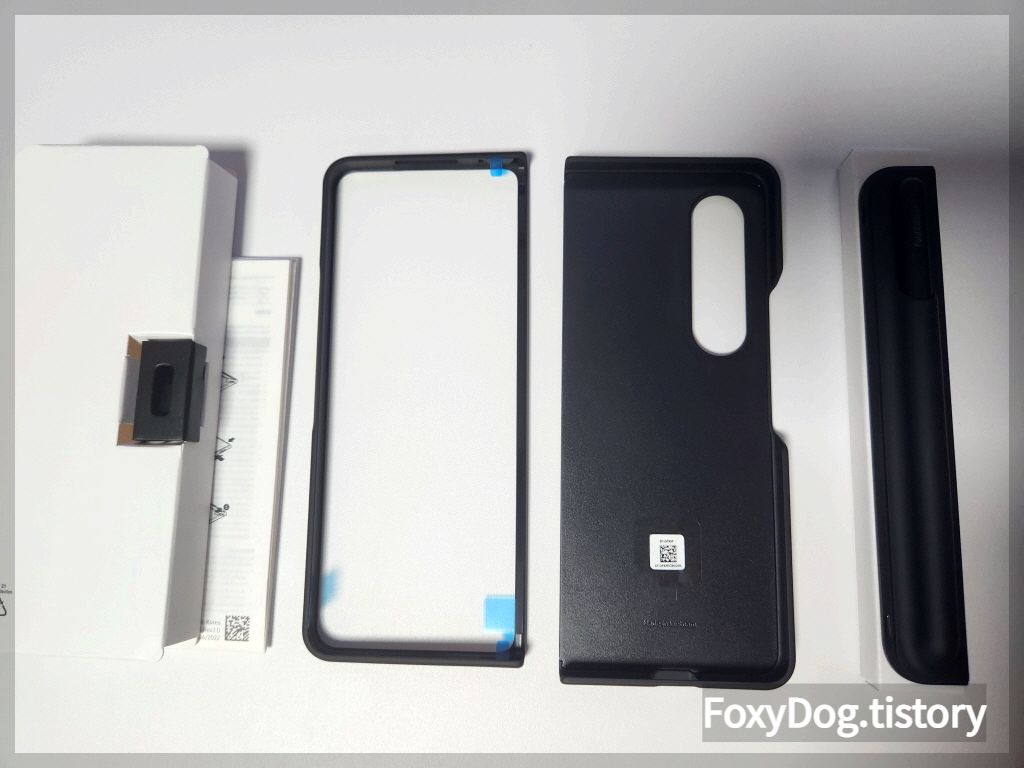 이번 폴드 4에서는 유독 액세서리 종류가 많이 나왔습니다. 25 W PD 충전기를 별도로 구매해야 는 건 덤.. 하여튼 1년 정도는 새것 같은 기분으로 사용해야 하니 폴더를 보호할 수 있는 커버 및 스크린 프로텍터를 구입을 해야겠지요. 필자는 사실 사전예약 구매 혜택으로 스텐딩 커버 With 펜(블랙)을 무료로 받았지만 레더 커버 그레이 그린(판매가 88,000원)과 스크린 프로텍터(14,300원)를 별매로 구입하였습니다. 추가로 AAUXX의 아이링 슬라이드(15,000원)도 구입하였습니다.