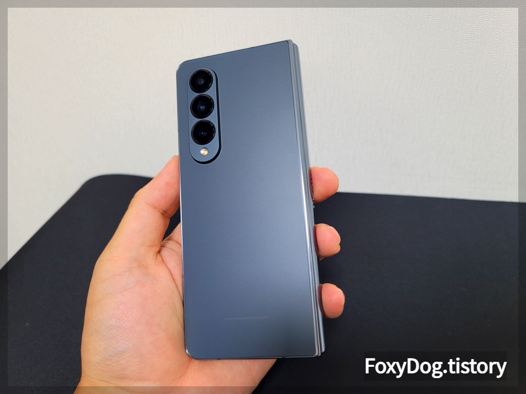 펼쳤을 때 나오는 7.6인치의 큰 화면은 먼가 심리적 안정감을 느끼게 해 줍니다. 메인 디스플레이는 기본적으로 보호필름이 붙어 있습니다. 검색을 해보니 외부 디스플레이와 후면 패널은 코닝(CORNING)이라는 대기업의 고릴라 글라스 빅투스를 사용하여 경도 및 내구성에 강하다고 합니다. 메인 디스플레이는 삼성 자체 소유의 초박형 유리로 제작되었으며, 두 개의 유리 같은 보호 플라스틱으로 덮여 있습니다. 만져보면 매우 매끄럽고 생각보다 지문이 잘 묻지 않았습니다. 일부러 부수려는 행위나 낙하 충격이 아니라면 일반적인 방어는 충분한 것으로 생각이 됩니다.