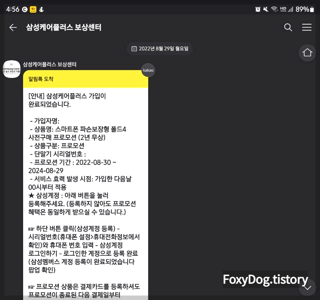 삼성닷컴에서 사전 예약 및 런칭 기간에 구매를 하셨다면 꼭 삼성 멤버십(Members)에서 2년(런칭은 1년) 무상 상품을 꼭 등록하세요. 이게 있고 없고의 차이는 매우 큽니다. 등록 신청을 하면 자동으로 가입이 됩니다.