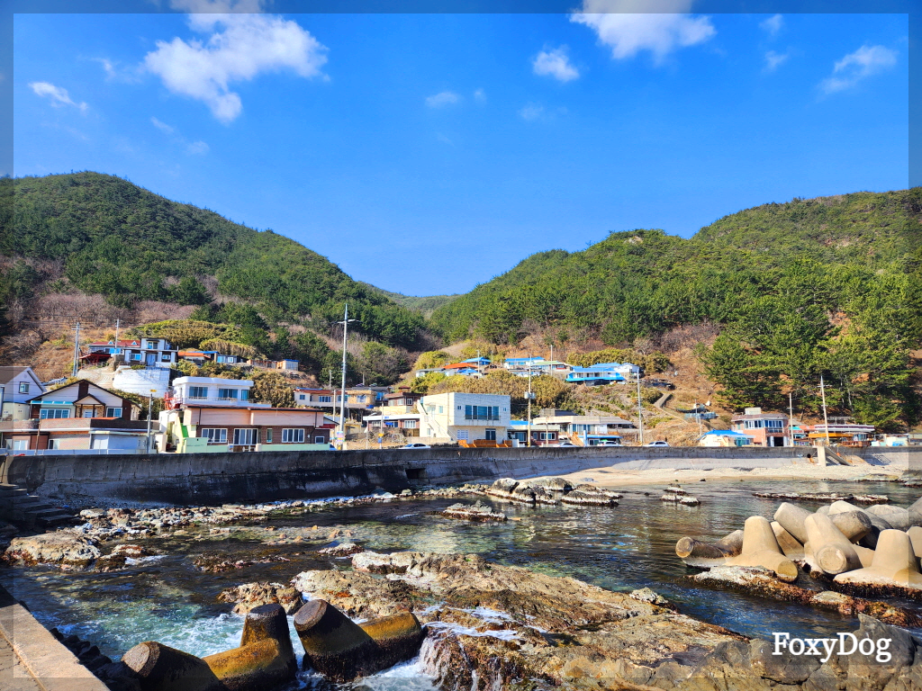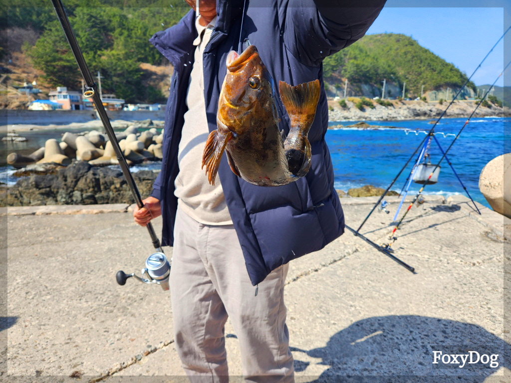 대구에서 제일 가까운 바다가 동해 쪽이라 포항 아니면 영덕 쪽 방파제 라인은 거의 한 번씩 다 둘러보았지만 여기가 TOP3안에 들 정도로 가장 마음에 드는 곳 중 하나다. 머랄까 작은 해안 마을이 정감이 간다고 할까, 주민분들도 낚시에 대해서 큰 터치 없이 관대한 것 같다. 시에서도 상시 관리를 하고 있는지 깔끔하다. 사실 대부분의 조사님들은 언덕 끝 왼쪽 방향의 테트라포트로 가시는데 여기 3월은 「학꽁치」 나 「벵에돔」 가끔 「감성돔」도 나오다 보니 꽤 알려진 장소인 것 같다.