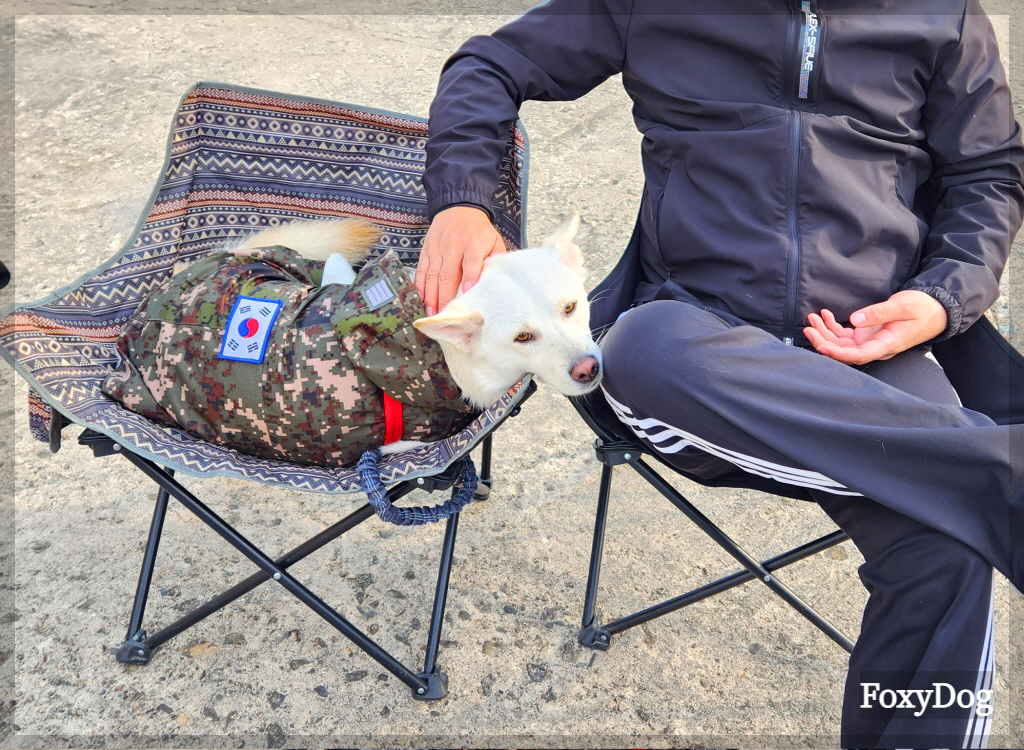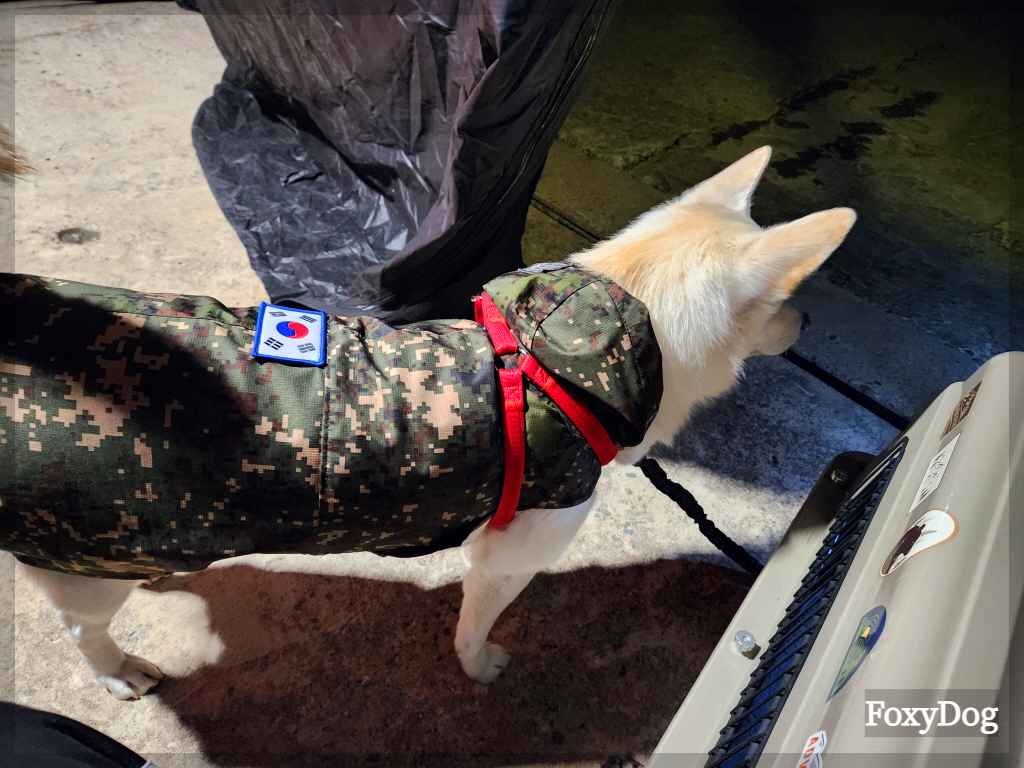 샤니 첫 등장! 이전에 군복을 입힌 사진을 올린 적이 있는데 업그레이드 돼서 등에 태극마크와 모자에는 병장 마크가 달려있다. 덩치가 제법 있어서 누가 보면 군견 아니냐는 착각을 할 수도 있을 것 같다. 어머니가 직접 만드신 옷인데 정말 핏이 딱 맞게 만들어져서 샤니도 큰 거부감 없이 잘 입고 다닌다. 외견은 진돗개 피를 진하게 물려받았지만 순수혈통은 아니며 시고르자브종이다.