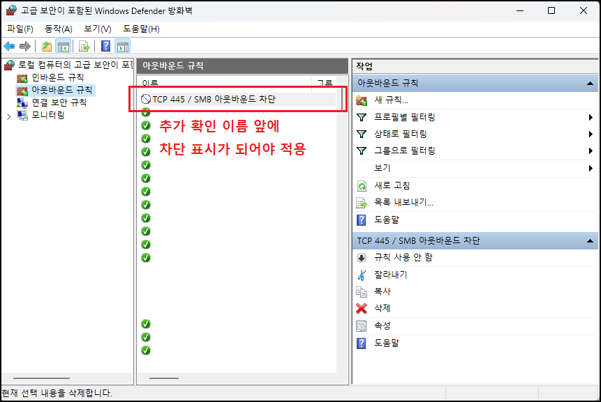 ◇ 네트워크에서 TCP 445/SMB 아웃바운드를 차단한다.