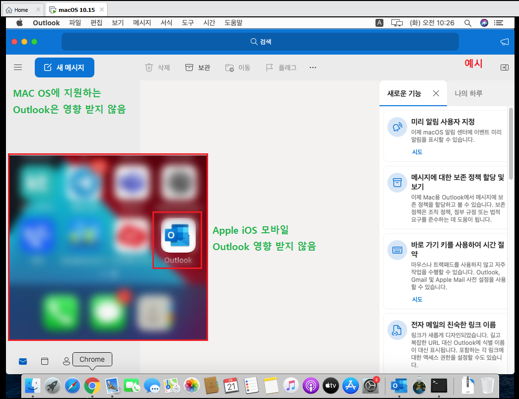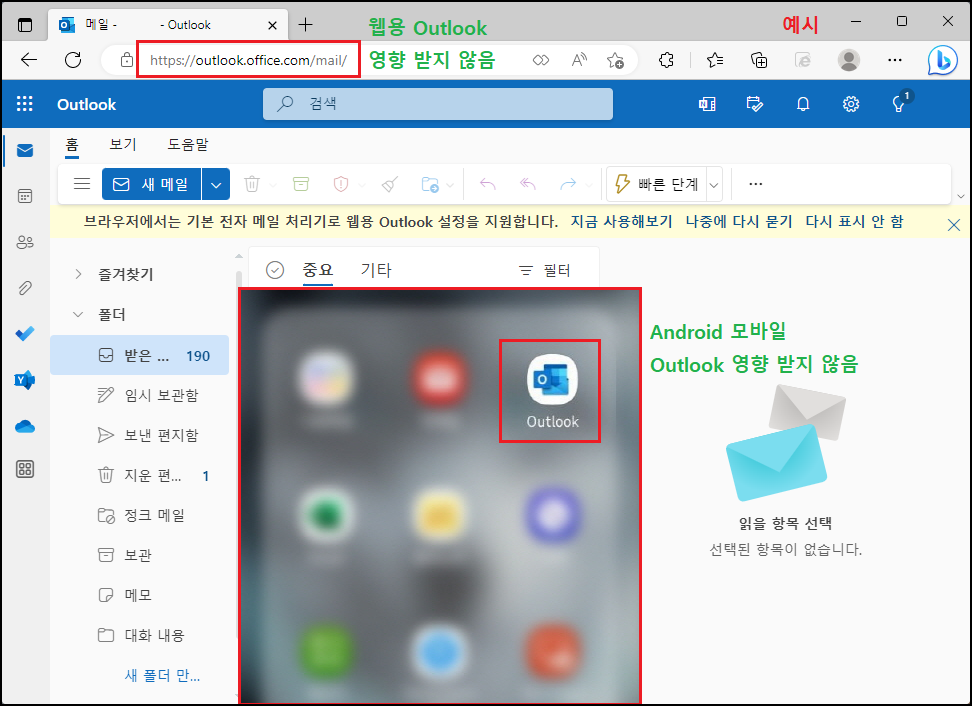 ※ Android, iOS, MAC OS용 Outlook, Web Outlook 및 기타 MS365 서비스는 영향을 받지 않음