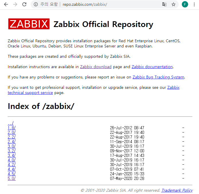 ※ Zabbix 공식 저장소[스크린샷 참고] - http://repo.zabbix.com/zabbix/