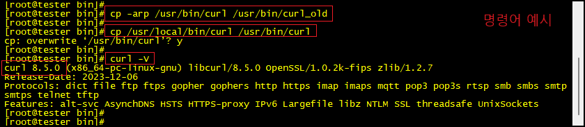 [root@]# cp /usr/local/bin/curl /usr/bin/curl 「기존 PATH 경로 Curl 덮어쓰기」
