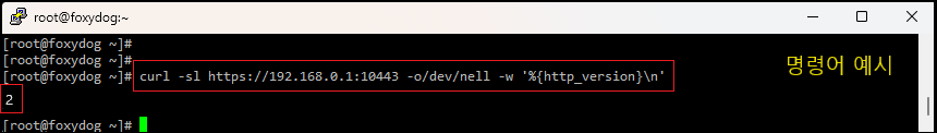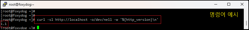 [root@]# curl -sl http://foxydogtest.co.kr -o/dev/nell -w '%{http_version}\n'