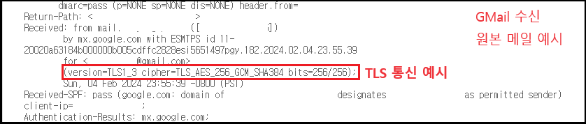 Received: 부분에서 「Version=TLS1_2, TLS1_3」 이상 표시가 되고 있으면 안전하게 암호화하여 전송을 수신받았다는 뜻입니다.