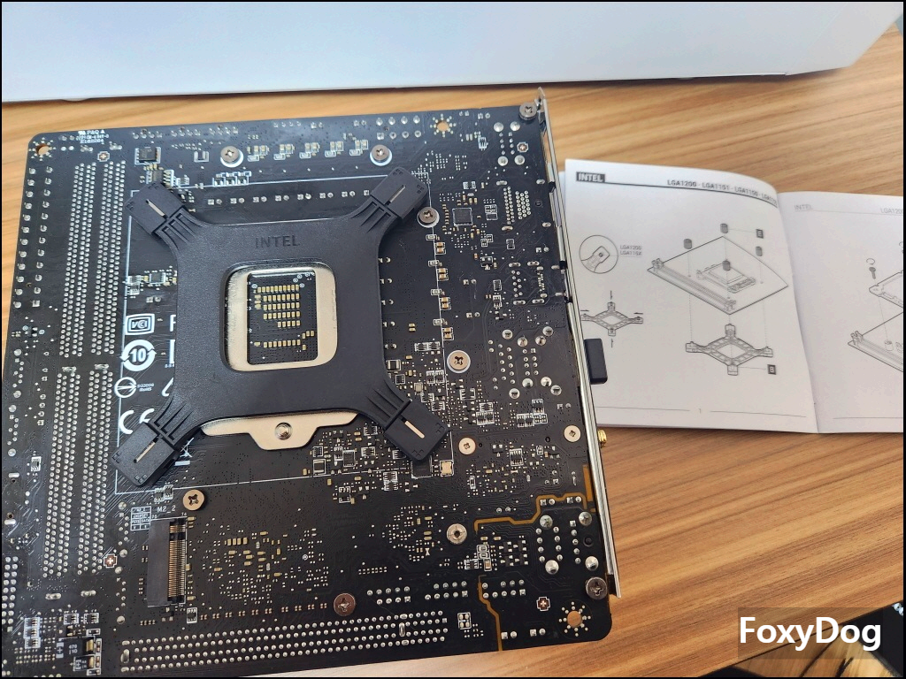 인텔 고정 키트인데 요즘은 양쪽 각각 고정하는게 아닌 풀 프레임 하나로 나오네요. 좀 더 견고한 느낌이 납니다. 간격이 맞는지 미리 확인합니다.