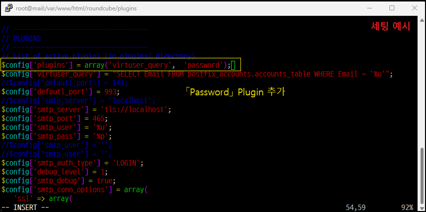 [root@mail~]# vim /var/www/html/roundcube/config/config.inc.php [설정 파일 열기]