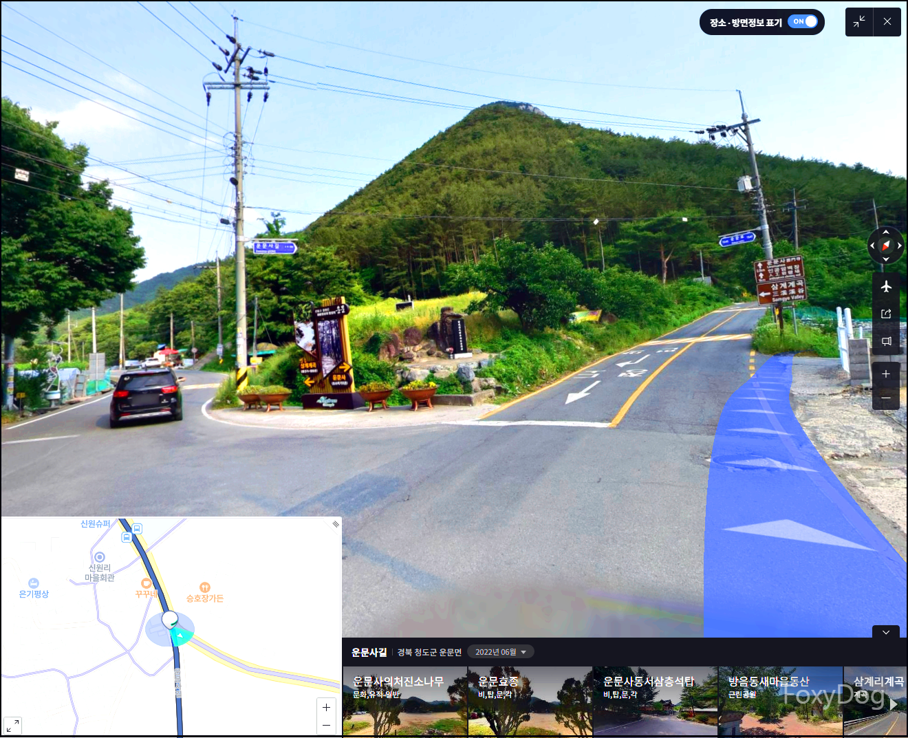 가다 보면 두 갈래 길이 나오는데 왼쪽은 「삼계계곡」 라인으로 다양한 캠핑장이 있고 오른쪽으로 직진하면 「운문사」가 나온다.
