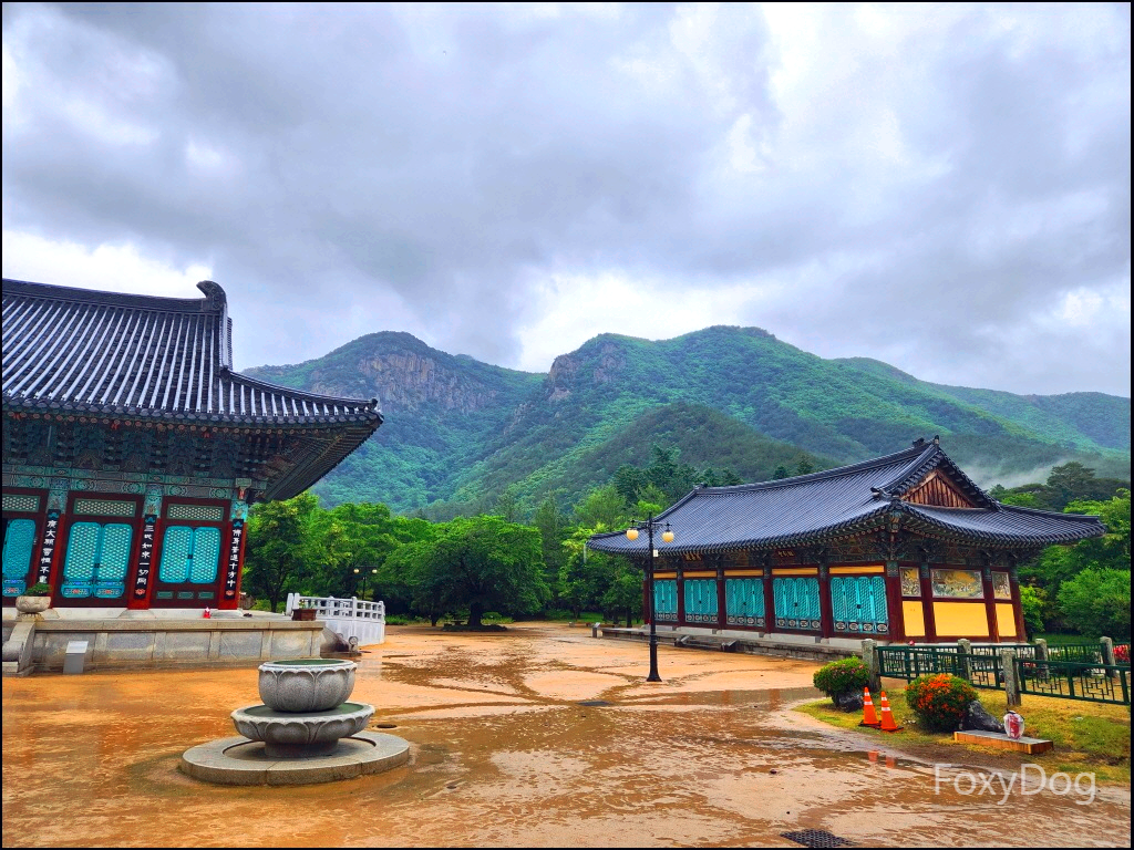 최초 들어오는 운문사의 정문 입구로 「범종루(梵鐘樓)」라고 한다. 지금이 6월 초인데 날이 맑은 날도 괜찮겠지만 적당히 비 오는 날에도 방문을 해보면 또 이만한 운치가 없다. 대충 찍어도 한 폭의 그림이다.
