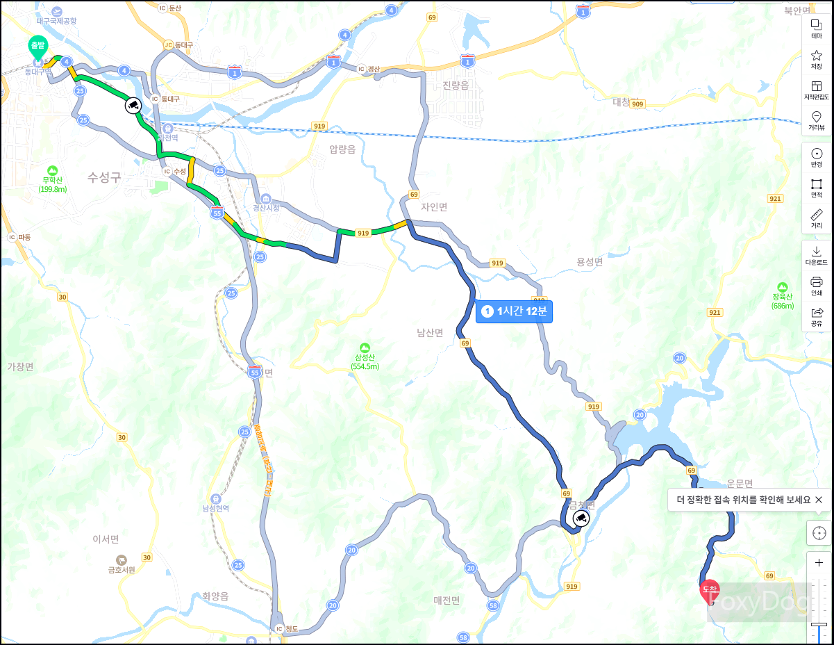 팔공산으로 가려다가 급 선회, 경상북도 청도 호거산에 있는 「운문사」로 목적지를 변경하였다. 운문사는 경상북도 청도군 운문면 신원리 호거산에 있는 사찰로 대한불교조계종 제9교구 본사인 동화사의 말사라고 한다. 좀 더 자세한 정보는 공식 홈페이지가 있으므로 역사에 대해 알고 싶다면 아래 URL 공식 홈페이지를 참고하면 된다. 동대구역 기준으로 약 60~70km 거리로 1시간 30분 내에 있어서 생각보다 가깝게 있다. 도착할 때쯤 운문호「운문댐」 및 캠핑장도 많아서 관광지로도 괜찮은 장소인 거 같다.