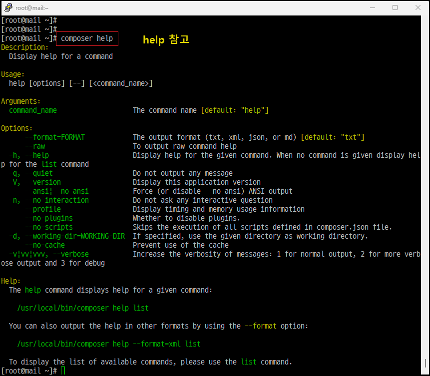 [root@mail ~]# mv composer.phar /usr/local/bin/composer [PATH 경로(글로벌)에 설치]