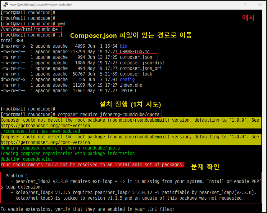 「~/roundcube/composer.json」 설치 경로에는 이미 정의된 파일이 있습니다.