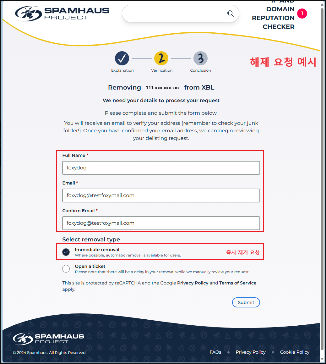 ③ Spamhaus RBL 조회 및 차단 해제 요청