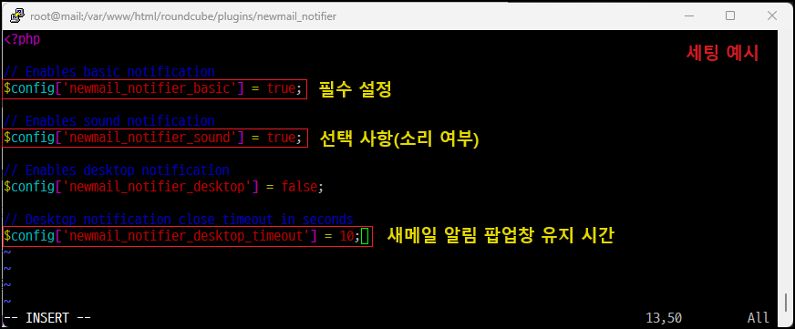 $config['newmail_notifier_sound'] = true; [※ 선택사항 소리 설정]