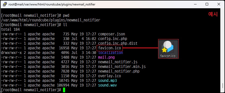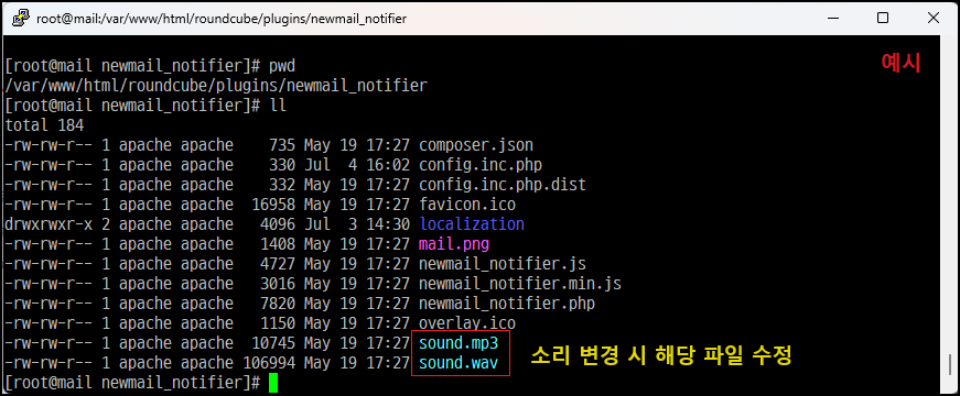 [root@mail ~]# cd /var/www/html/roundcube/plugins/newmail_notifier/ [경로 이동]