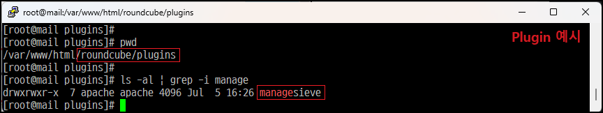 [root@mail ~]# cd /var/www/html/roundcube/plugins/managesieve/ [경로 이동]