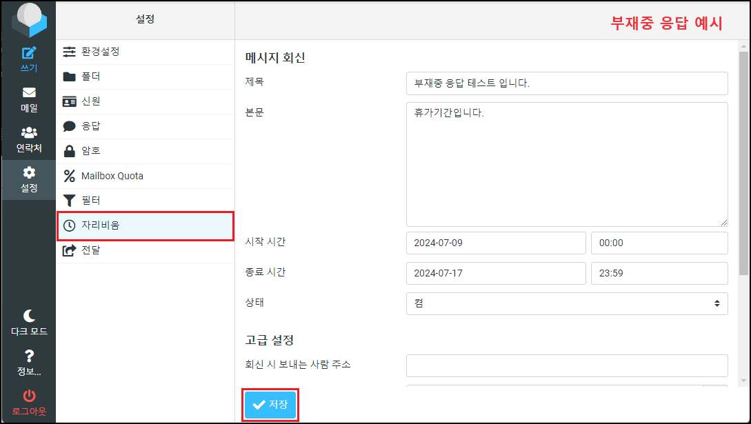 $config['managesieve_vacation'] = 1; [※ 부재중 설정, 0 → 1 변경]