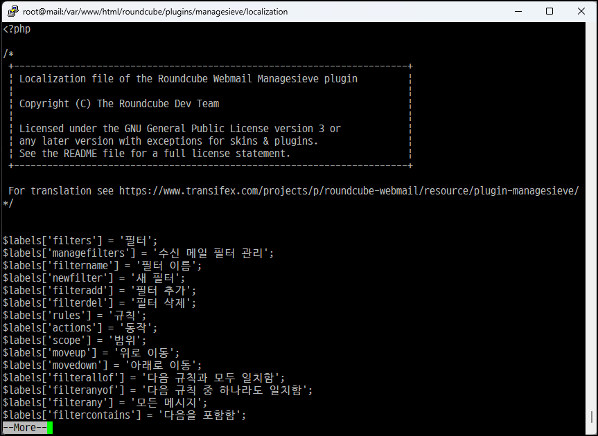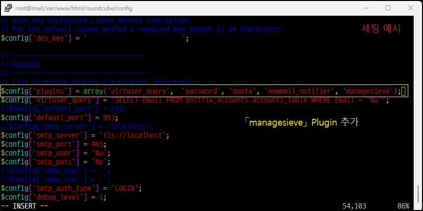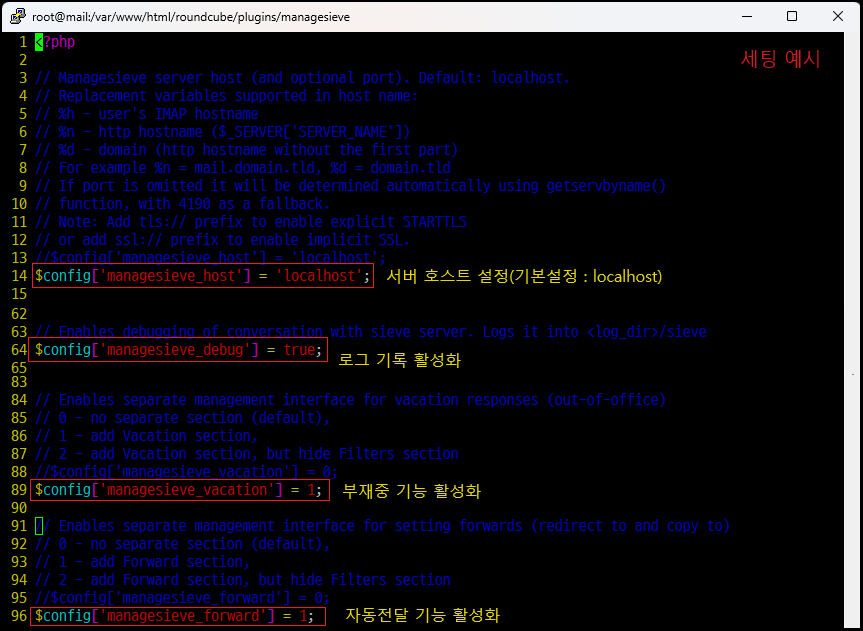 [root@mail managesieve]# vim config.inc.php [환경 설정 열기]