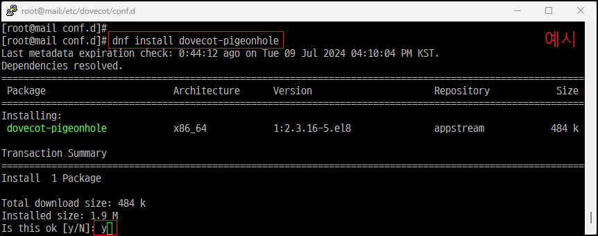 [root@mail ~]# dnf(yum) install dovecot-pigeonhole [필자는 Rocky Linux 8.10]