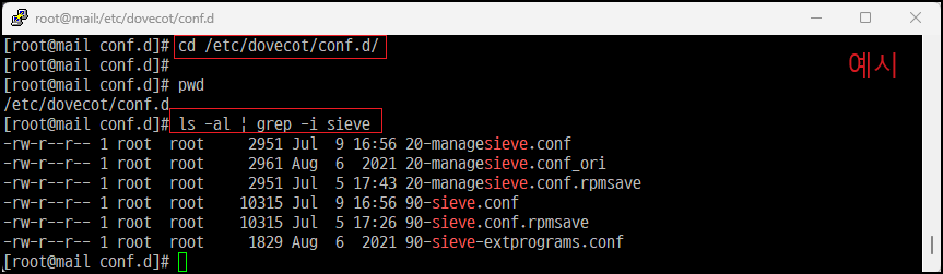 [root@mail ~]# ls -al | grep -i sieve [설정 파일 생성 확인]